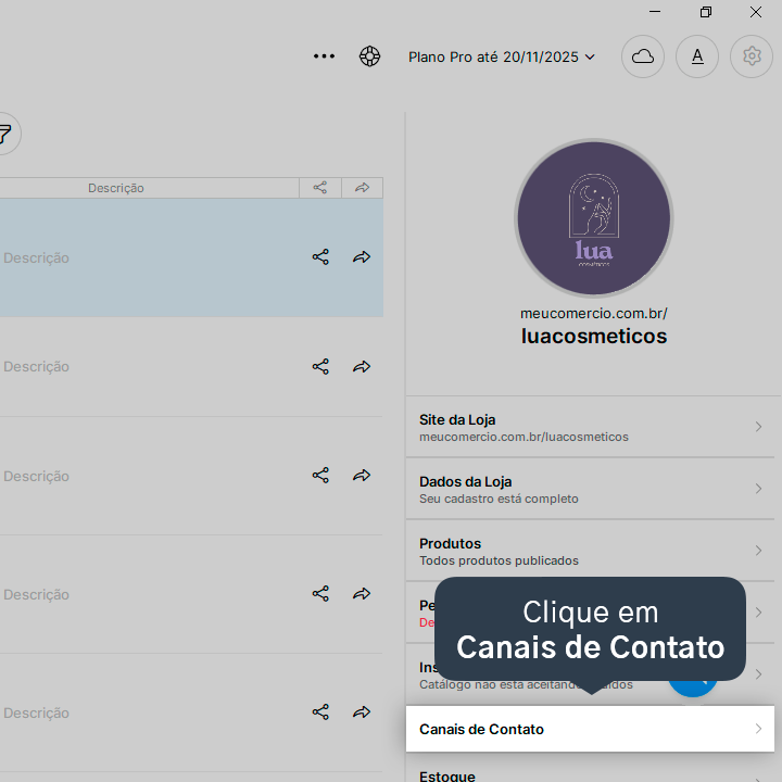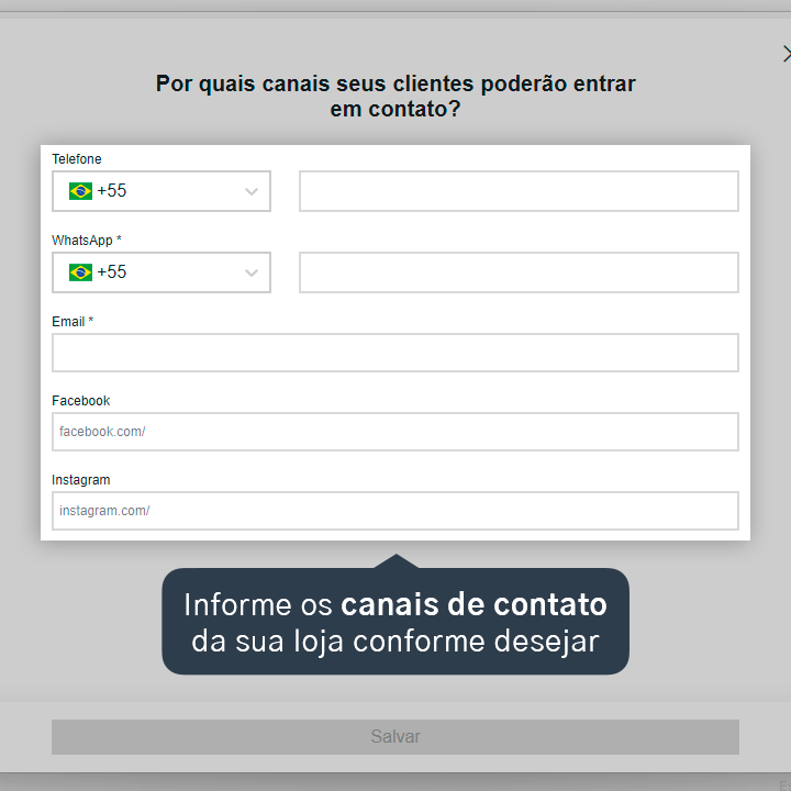 Veja como configurar os canais de contato da sua loja no Catálogo online.