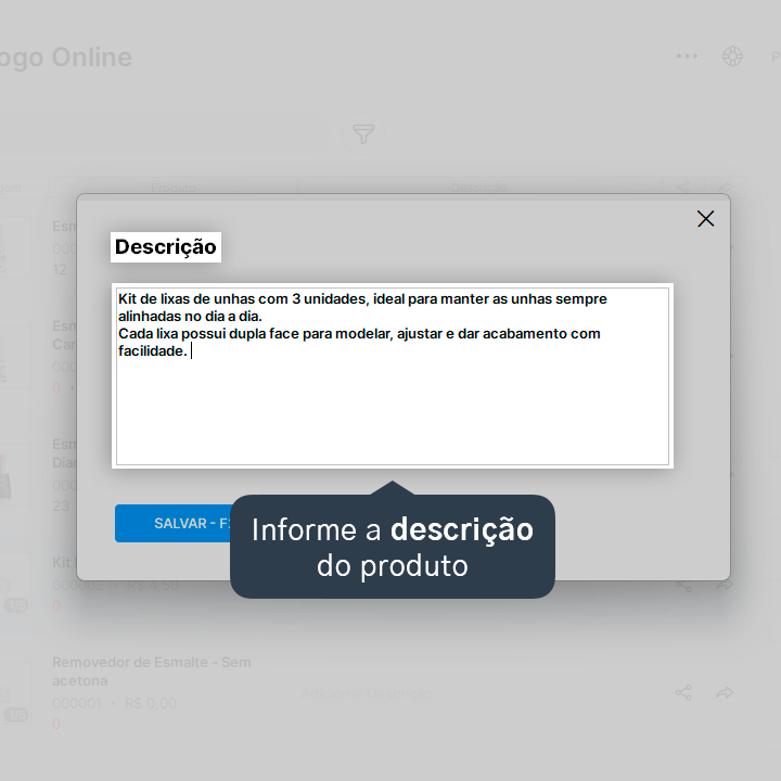 Veja como adicionar uma breve descrição aos produtos da sua loja no Catálogo online.