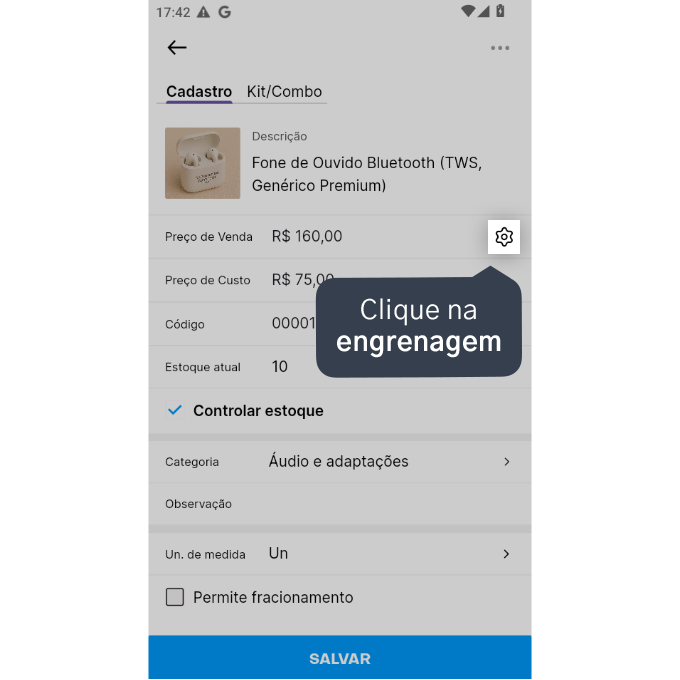 3. Clique na engrenagem, ao lado direito do Preço de Venda.