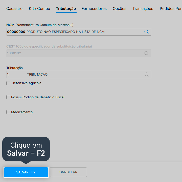 3. Na aba Tributação, selecione o NCM 0000.00.00.