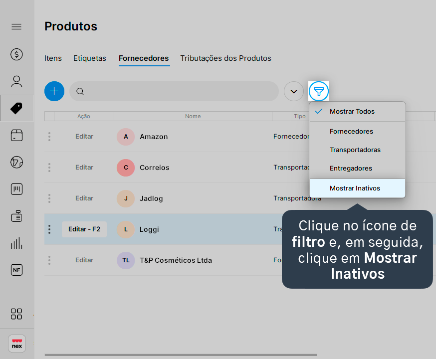 Veja como é simples e prático reativar o cadastro de um fornecedor que está inativo. Dessa maneira, ao ativá-lo, você pode voltar a atrelar o fornecedor ao cadastro de produtos.
