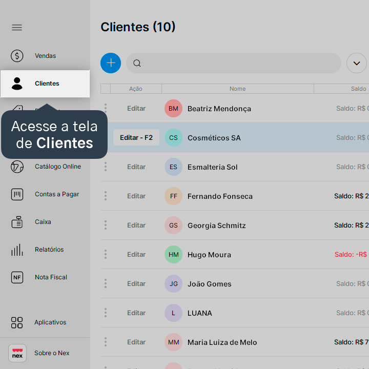 Pronto! O cadastro do cliente foi reativado e aparecerá na lista de clientes, disponível para registrar transações no Nex.
