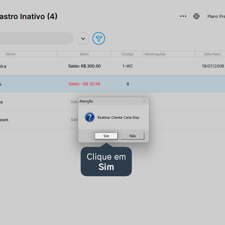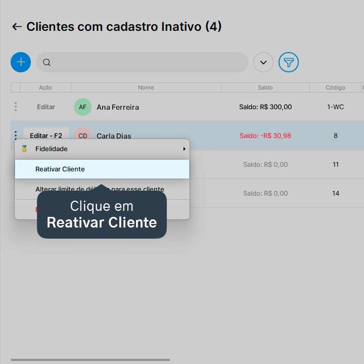 Aprenda a reativar o cadastro de um cliente após inativa-lo.