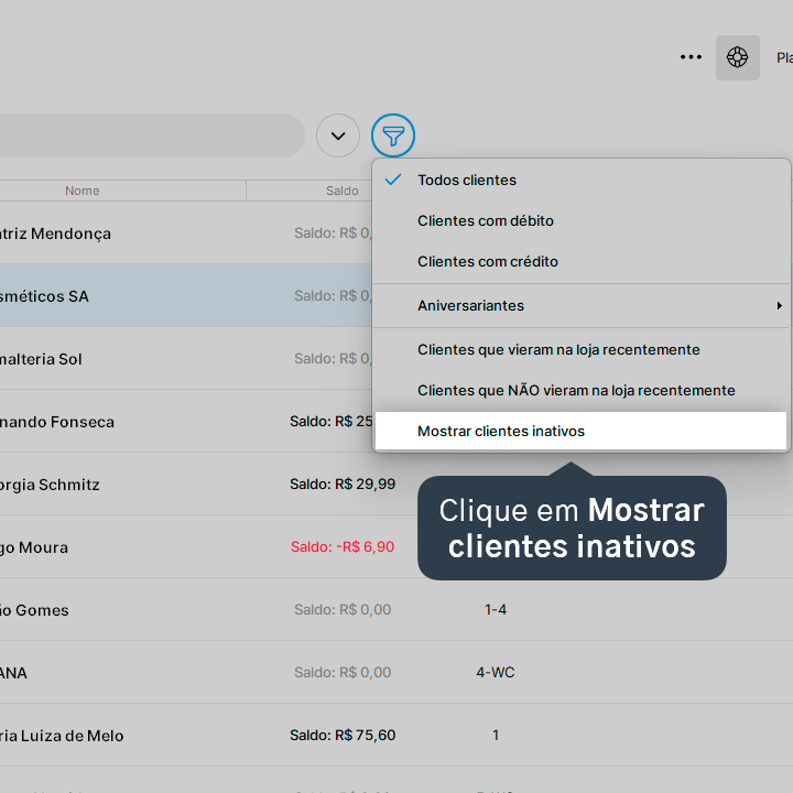 3. Clique em Mostrar clientes inativos.