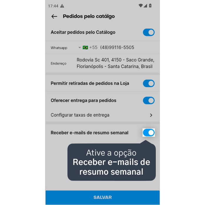 Veja como ativar o relatório semanal de pedidos online do seu Catálogo online.