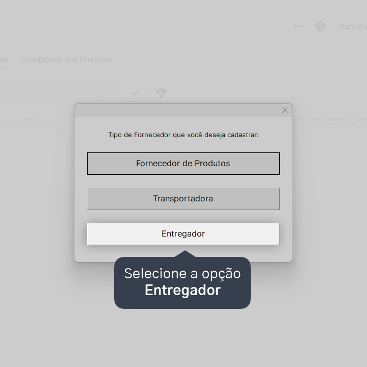 1. Na tela de Produtos, acesse a aba Fornecedores.