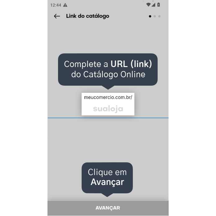 4. Complete a URL (link) do seu Catálogo online e, em seguida, clique em Avançar.