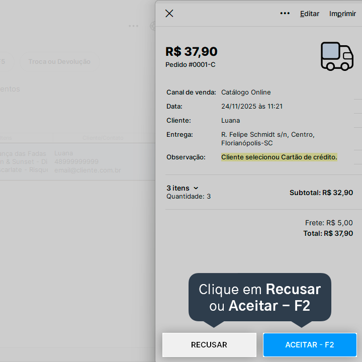 Veja como aceitar ou recusar um pedido online feito através do Catálogo online.