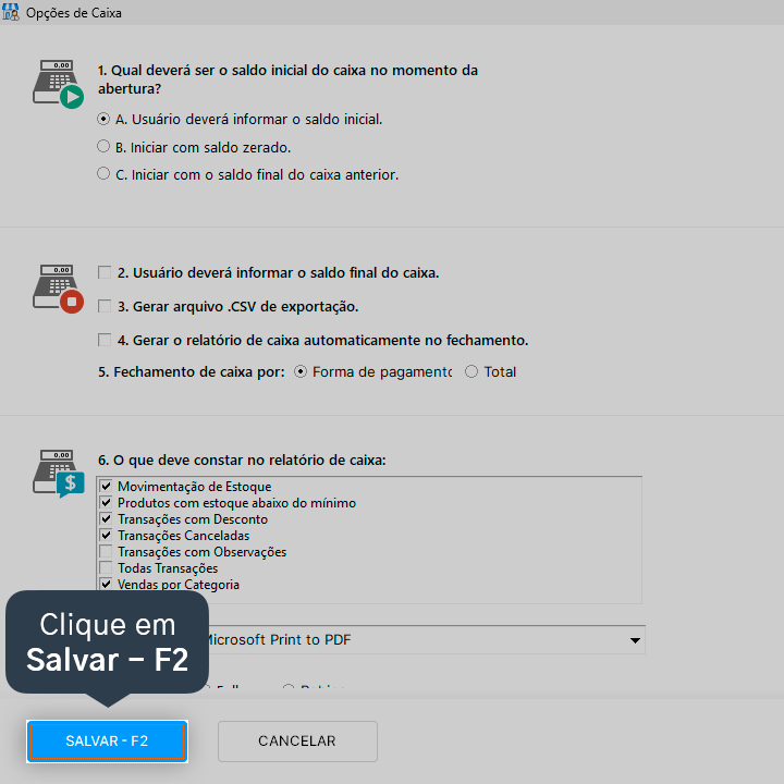 Pronto! O modo de fechamento do caixa foi alterado e será aplicado no próximo fechamento de caixa que você realizar.