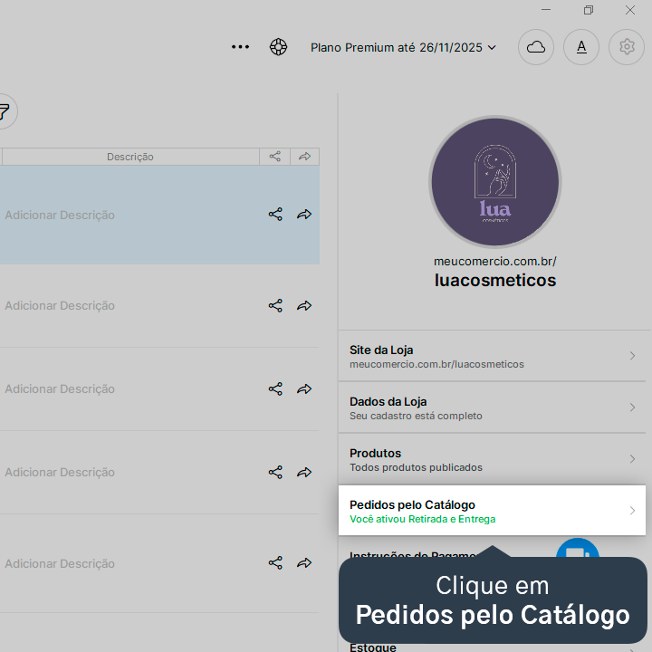 1. Acesse a tela de Catálogo Online, no menu lateral esquerdo.
