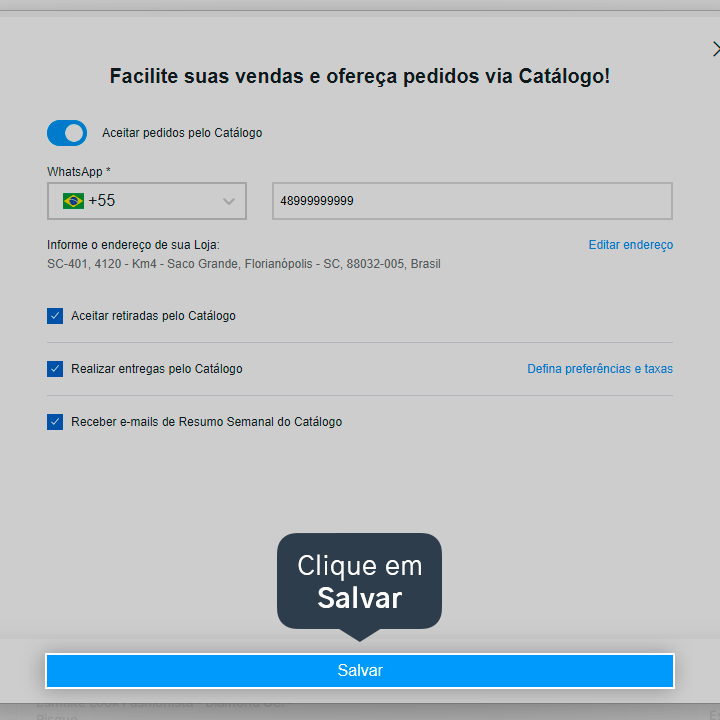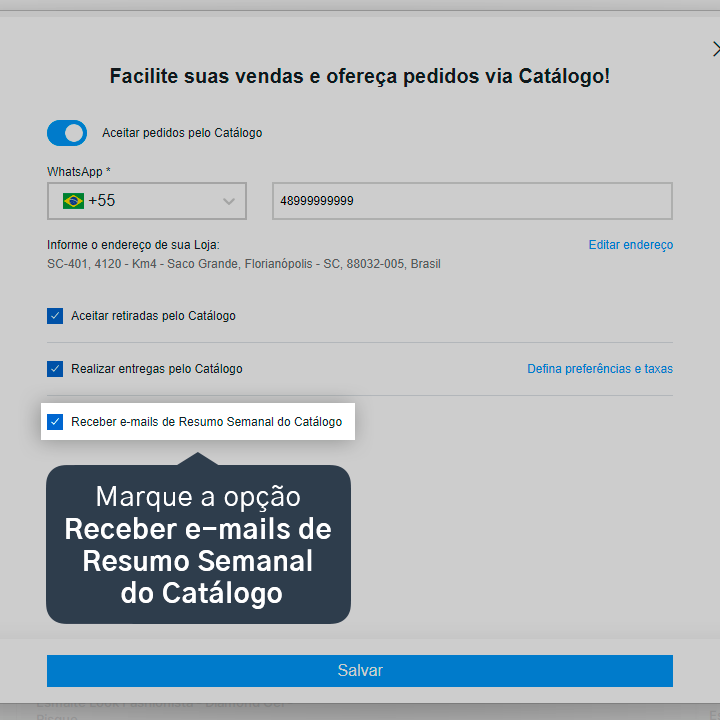 3. Marque a opção Receber e-mails de Resumo Semanal do Catálogo.