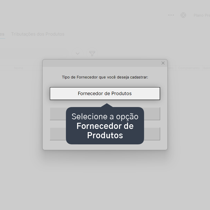 1. Na tela de Produtos, acesse a aba Fornecedores.