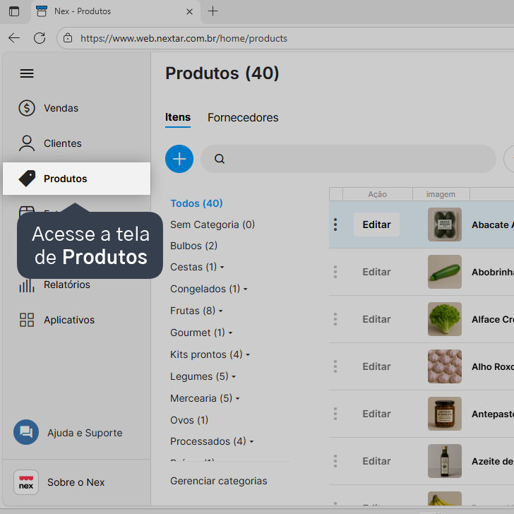 2. Acesse a tela de Produtos.