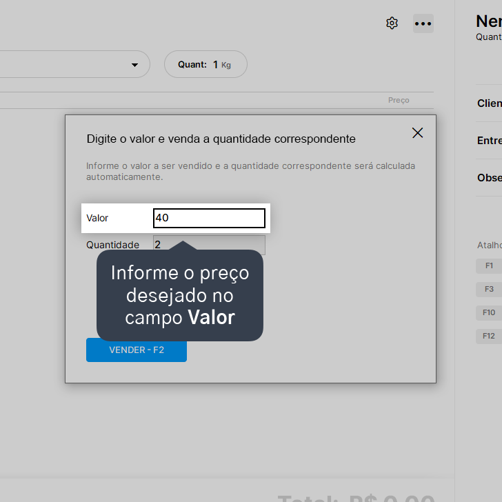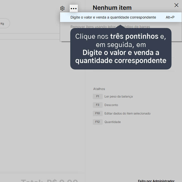 3. No menu superior, clique nos três pontinhos e, em seguida, em Digite o valor e venda a quantidade correspondente.