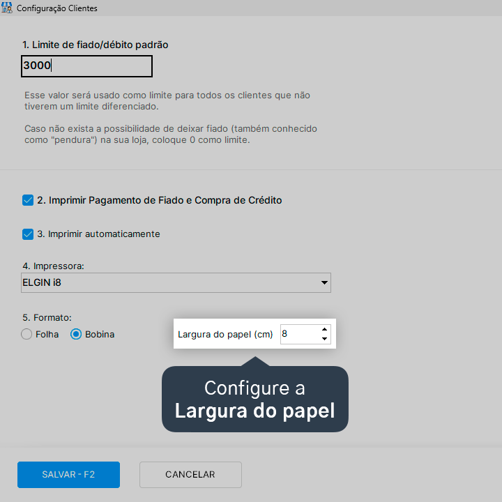 6. Configure a Largura do papel, indicando o tamanho em centímetros.