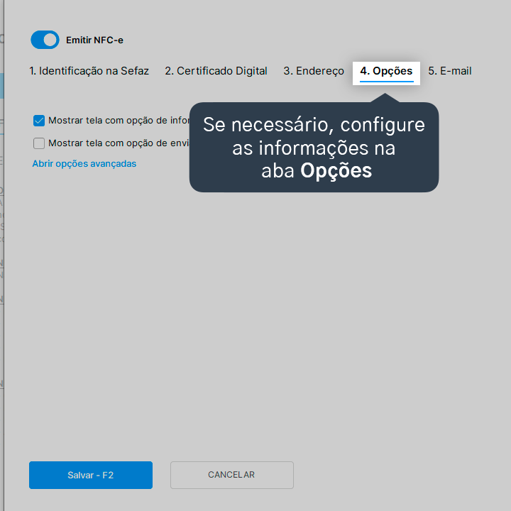 4. Ative a opção Emitir NFC-e.