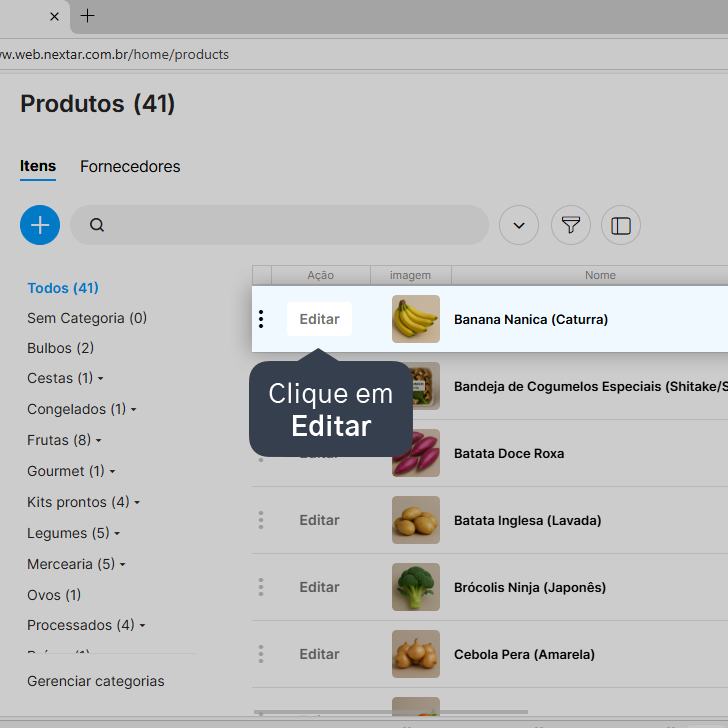 3. Clique em Editar ao lado do produto desejado.