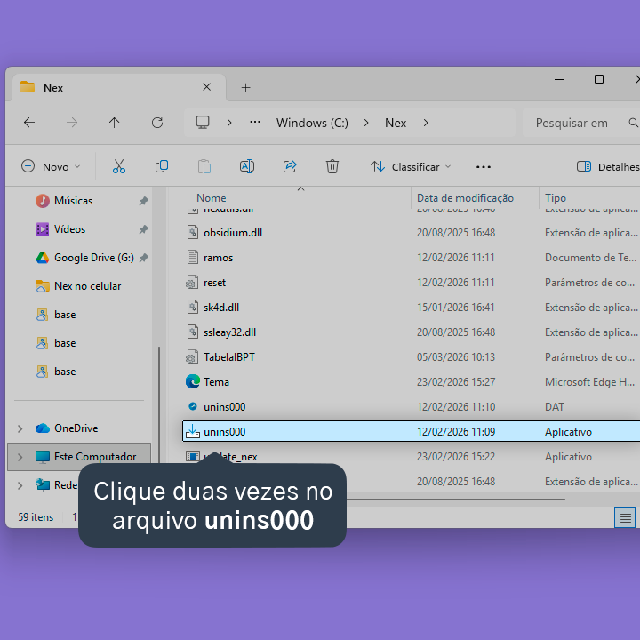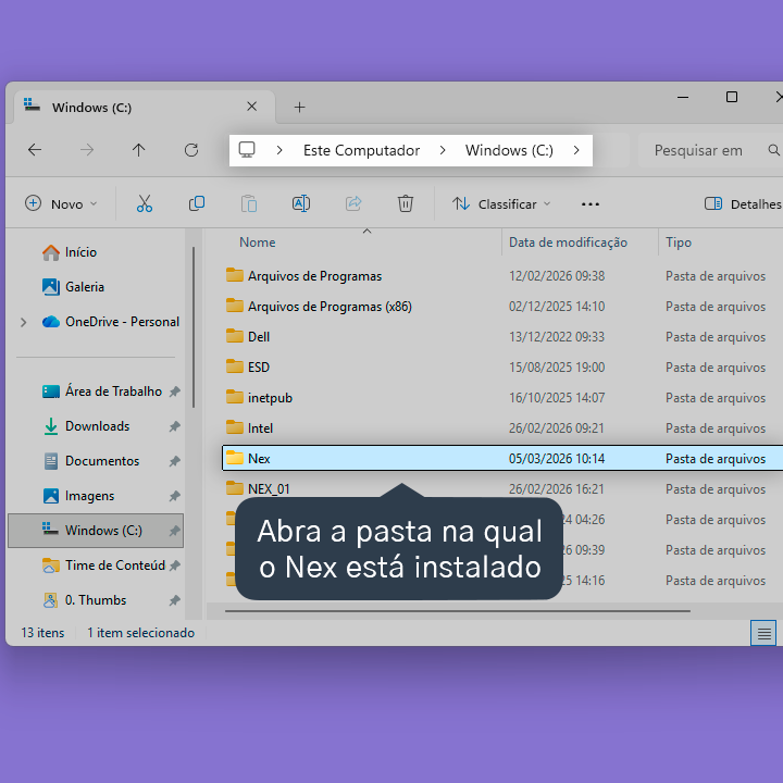 1. Acesse a pasta na qual o Nex está instalado.