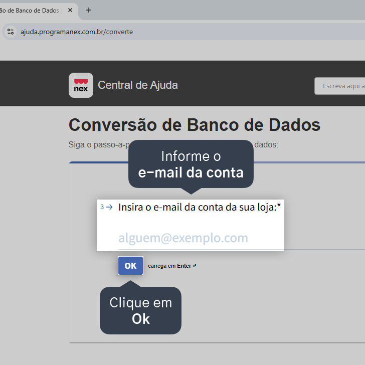 5. No item 3, informe o seu e-mail da conta e, em seguida, clique em Ok.