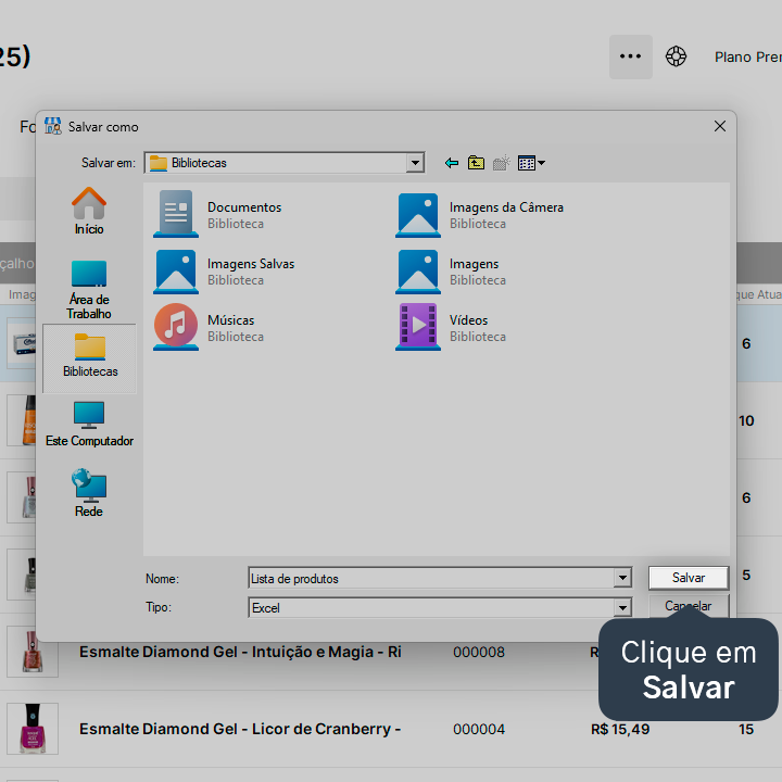 3. Escolha o local onde o arquivo será salvo.