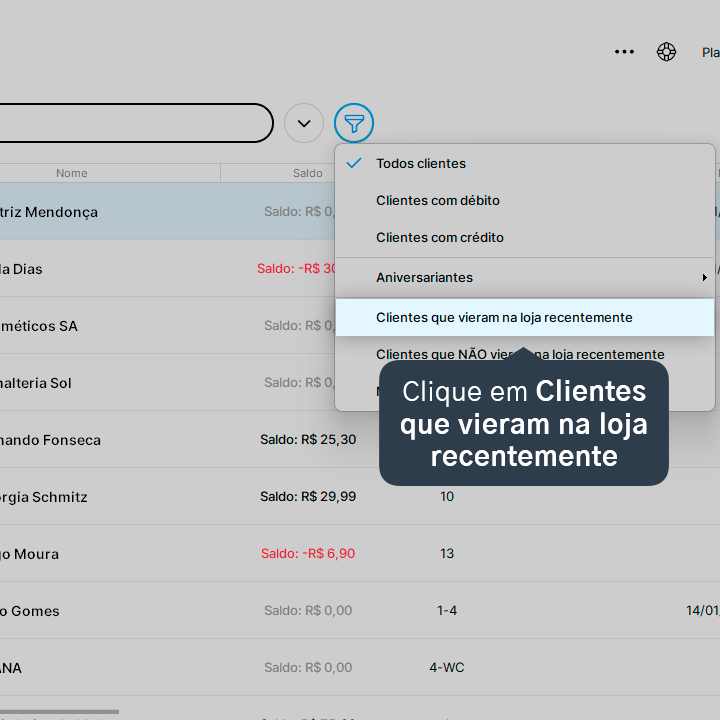 Veja como filtrar os seus clientes mostrando aqueles que visitaram a sua loja recentemente.
