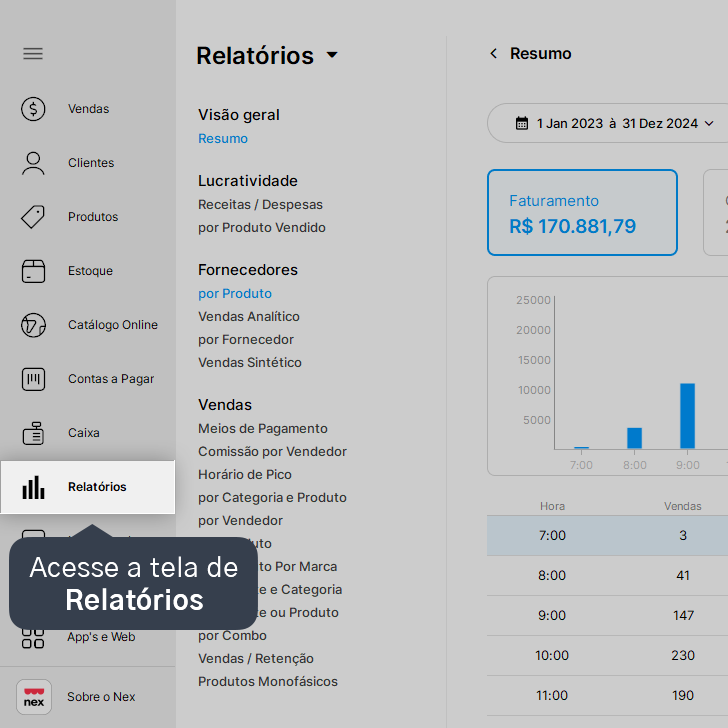 1. Acesse a tela de Relatórios.