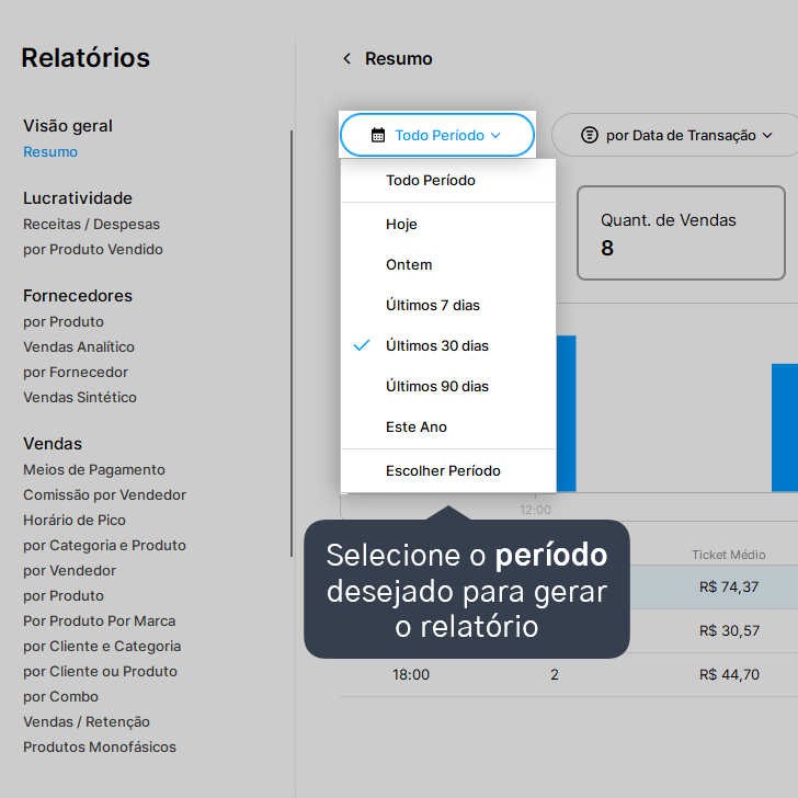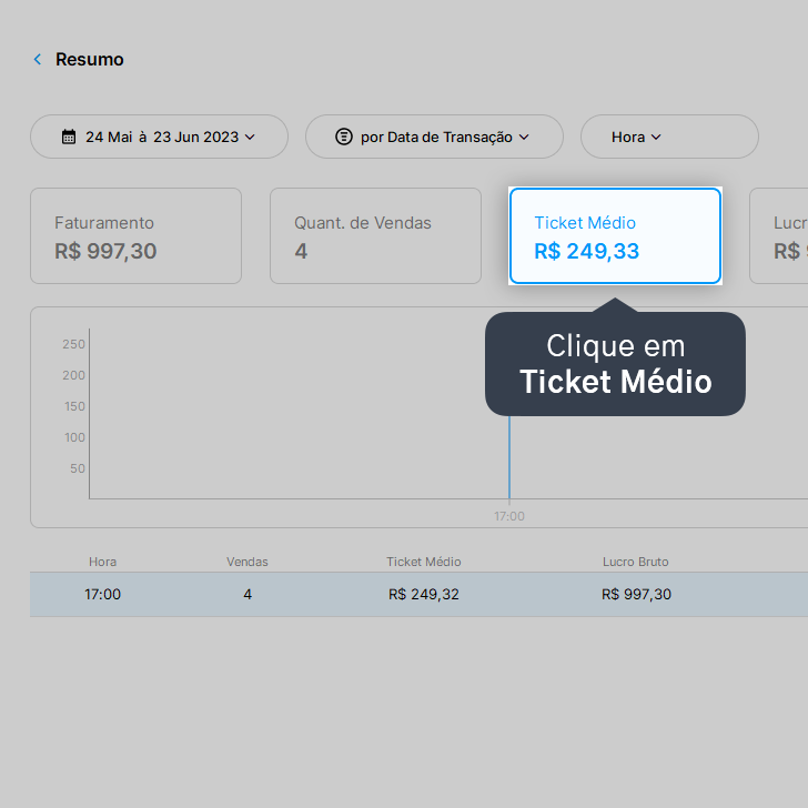 Pronto! Agora você pode consultar suas informações de ticket médio no período que preferir.