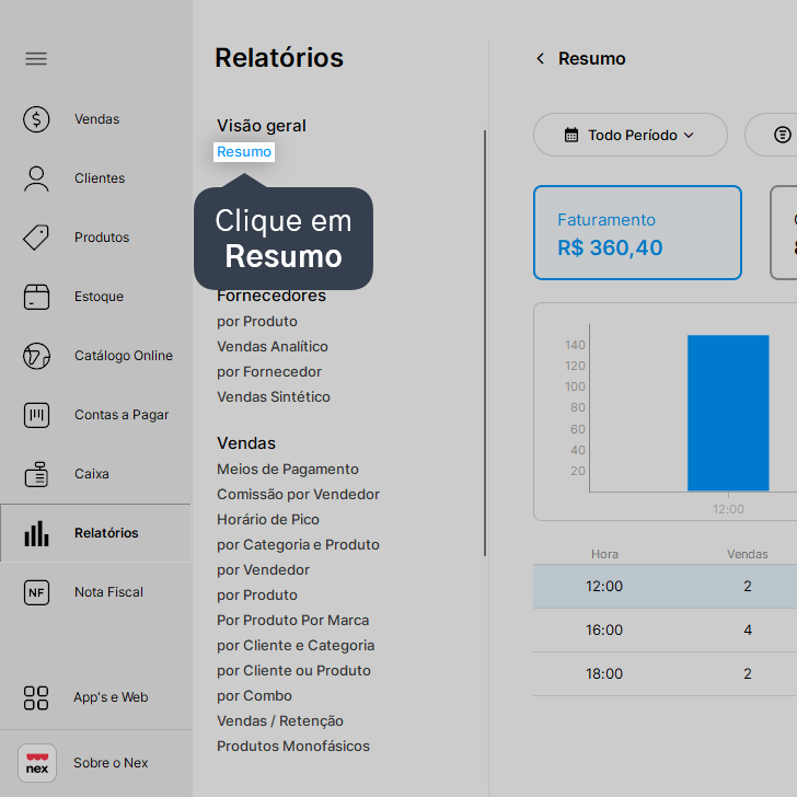 Veja como gerar o relatório de ticket médio pelo Nex no computador.