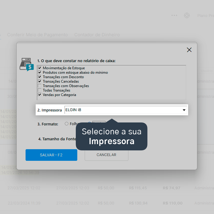 8. Clique em Salvar - F2 para que a impressão ou o PDF seja gerado.