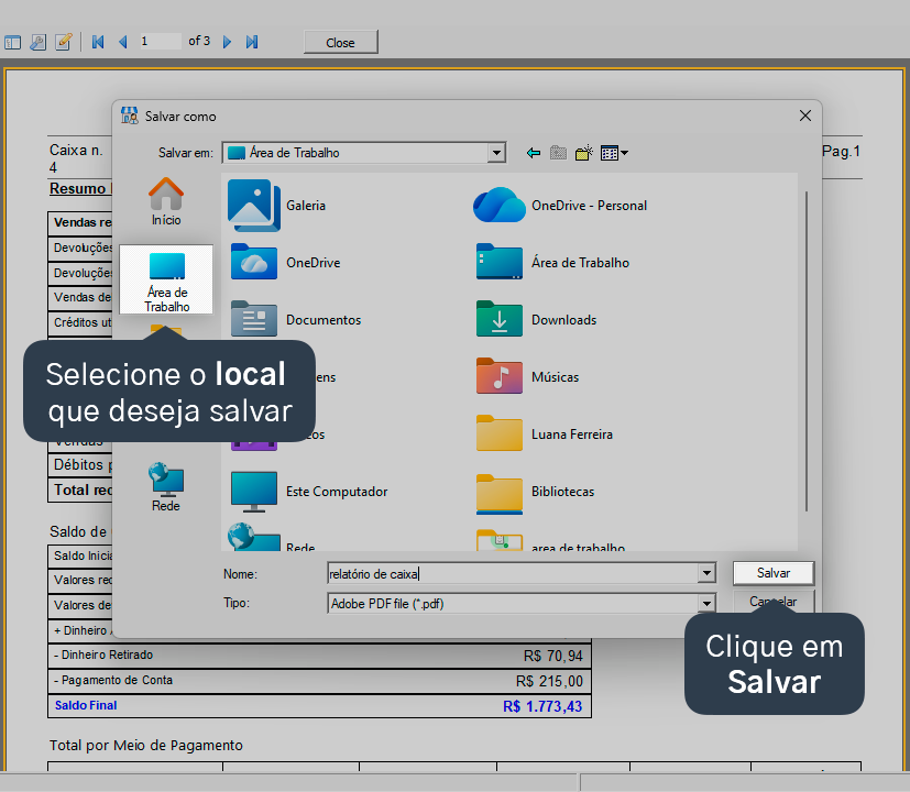 Pronto! Agora você já sabe como imprimir e salvar em PDF os relatórios do seu caixa.