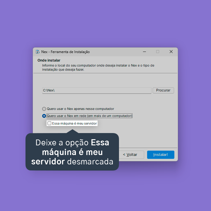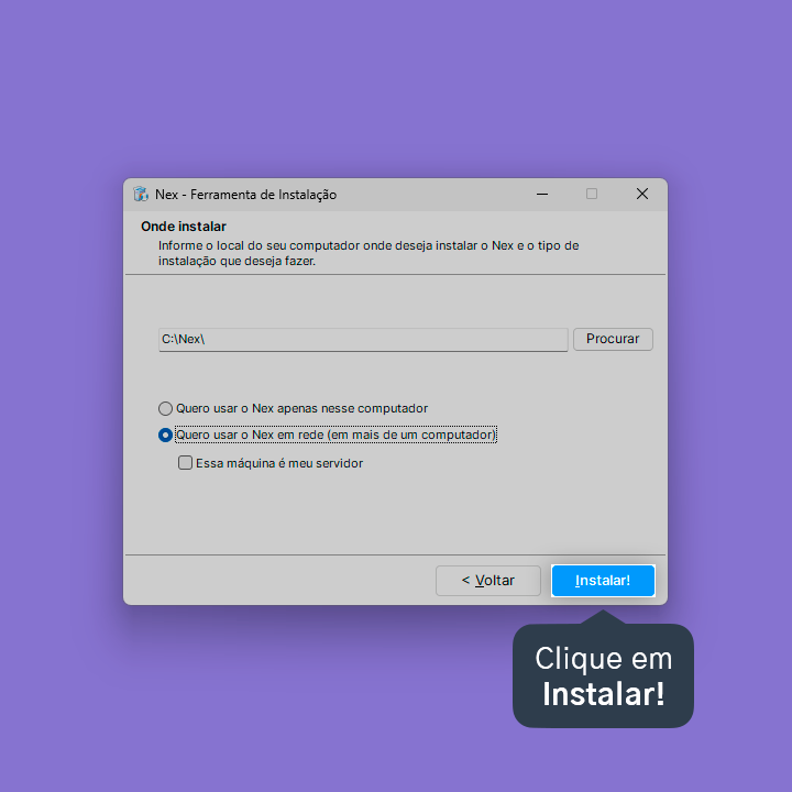 5. Marque a opção Quero usar o Nex em rede (em mais de um computador).