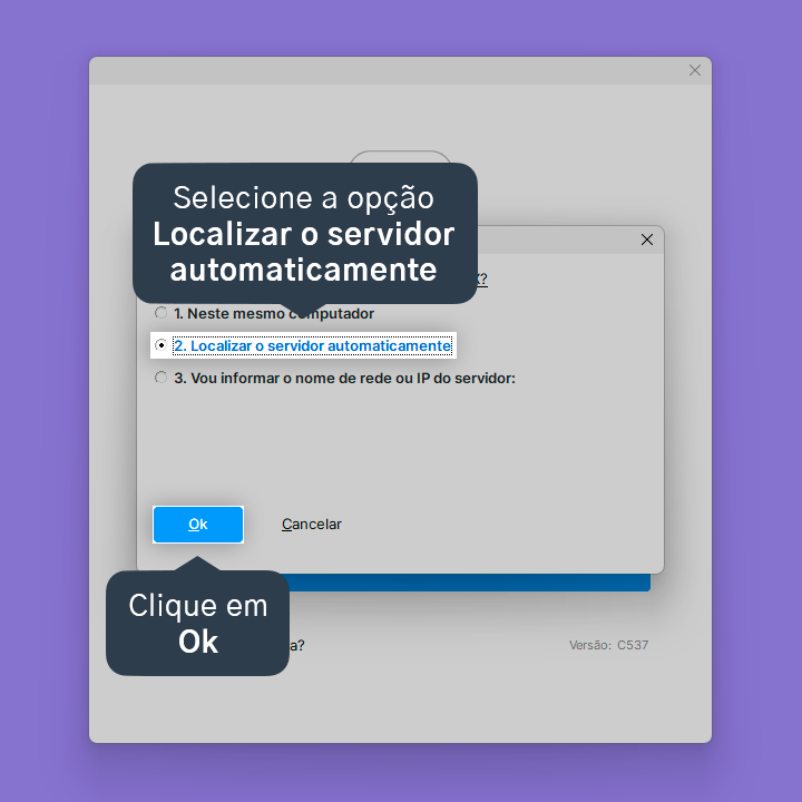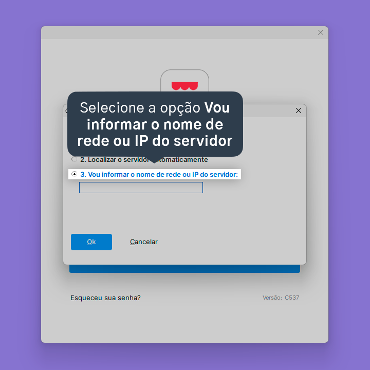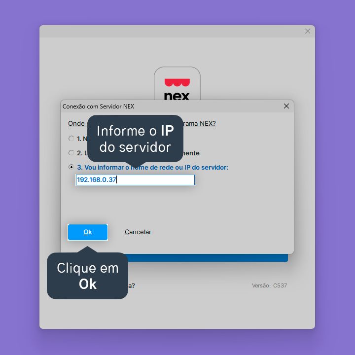 4.1 Informe o IP do computador servidor e, em seguida, clique em Ok.