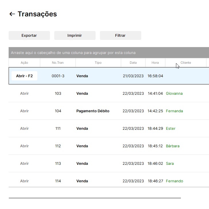 7. Clique duas vezes no cliente desejado para visualizar as transações.