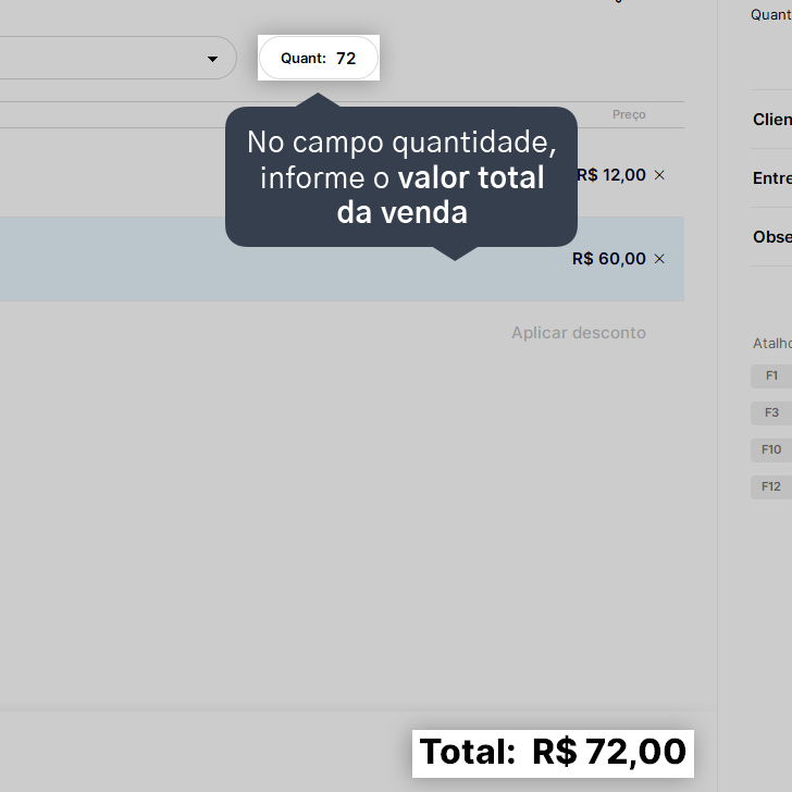 2.4. No campo quantidade, informe o valor total da venda (sem a taxa).