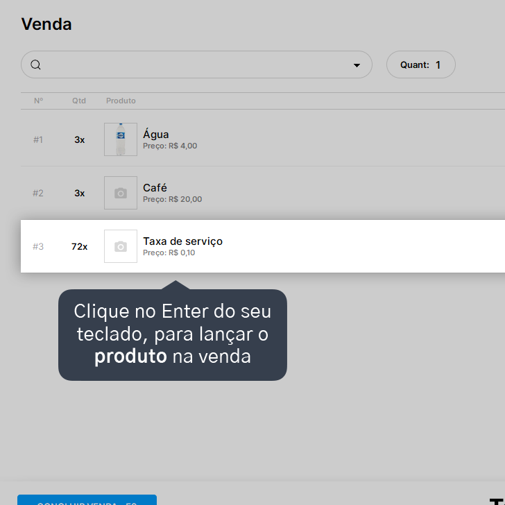 2.5. Para lançar o produto, clique no Enter no seu teclado para lançar a taxa de serviço na venda.