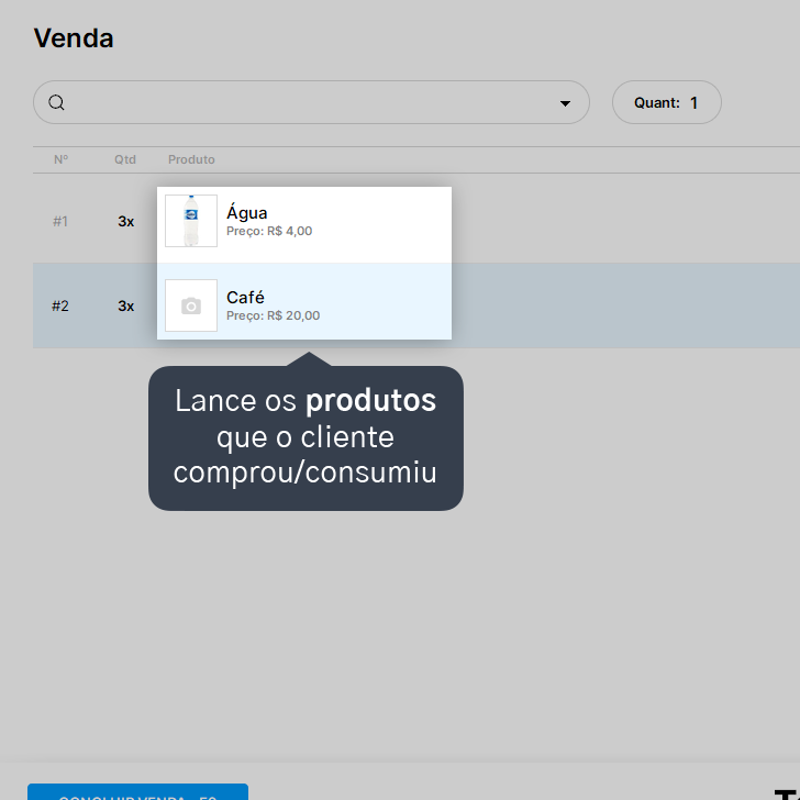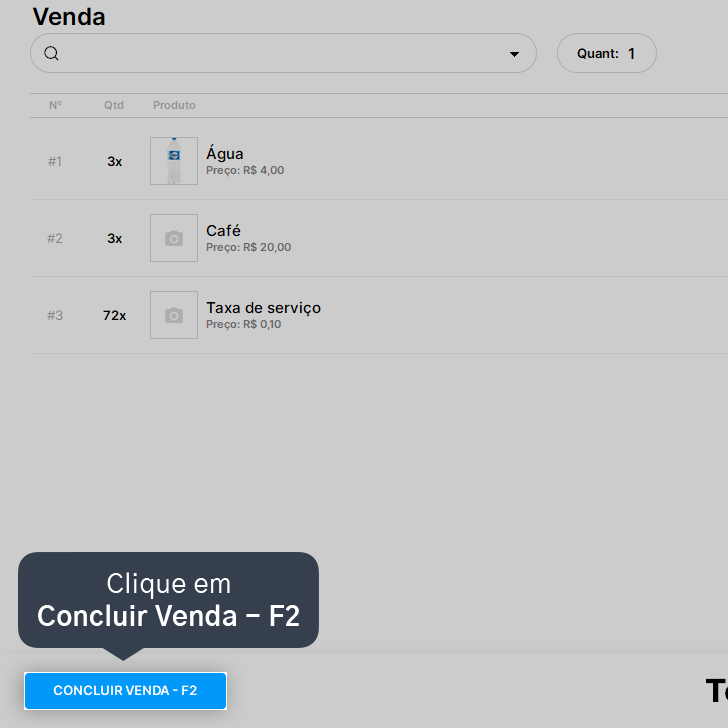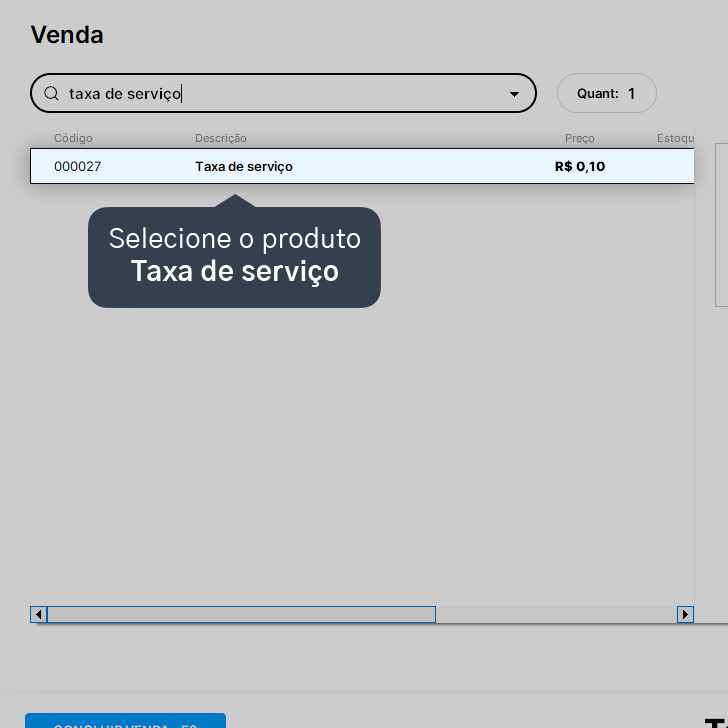 2.3. Após adicionar todos os produtos na venda, selecione o produto Taxa de serviço.