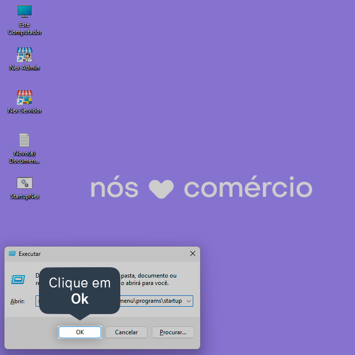 Pronto! Agora o seu Windows está configurado para inicializar o Nex Servidor toda vez que o computador for ligado.