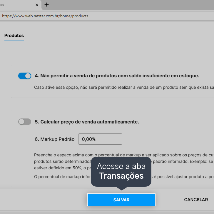 Veja como configurar para que o Nex não permita a venda de produtos sem estoque.