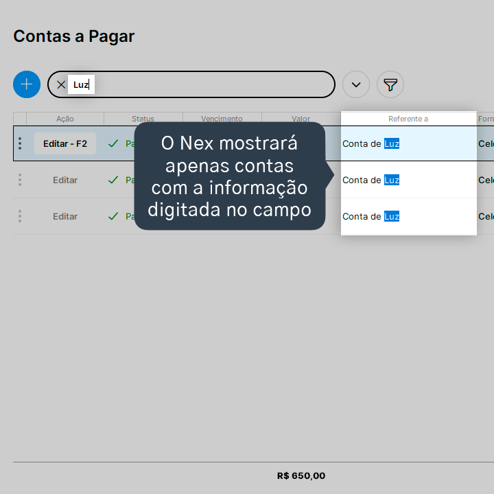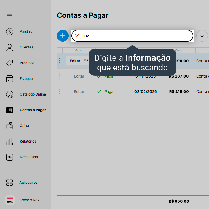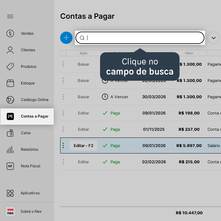 1. Na tela de Contas a Pagar, clique no campo de busca.