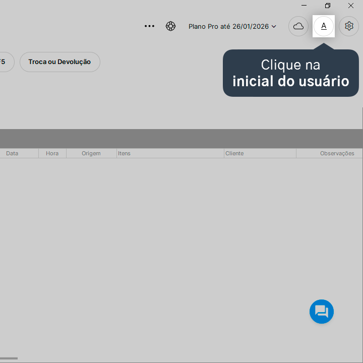 1. Abra o Nex e clique na inicial do usuário, no canto superior direito da tela.