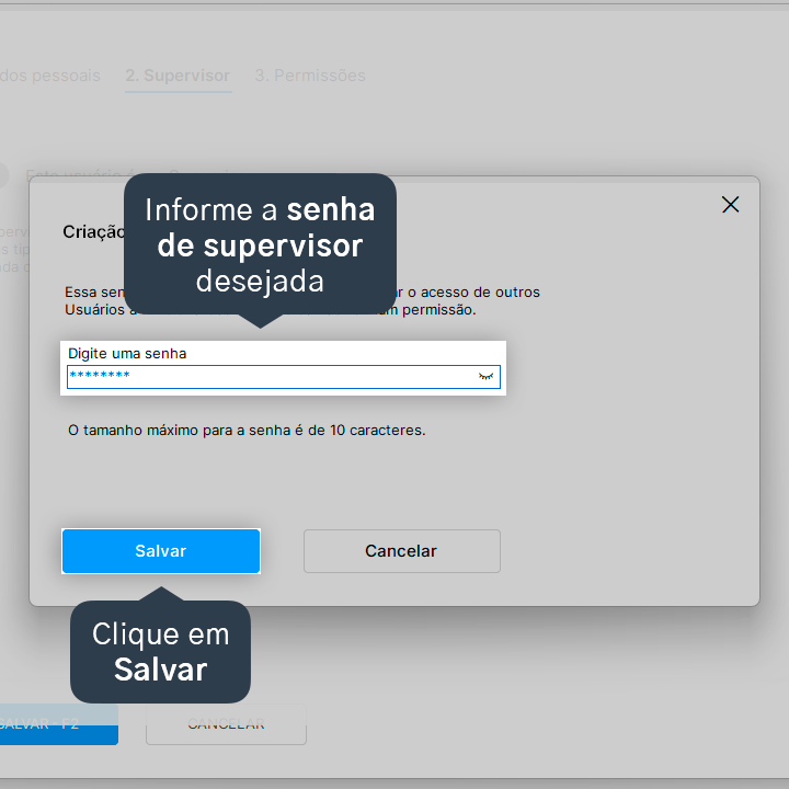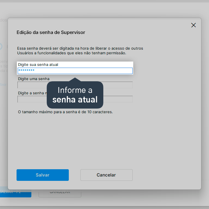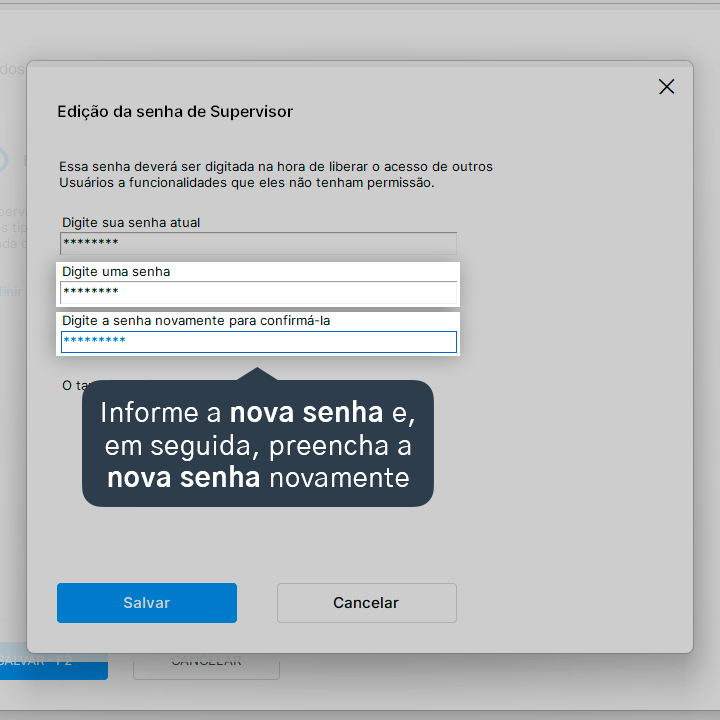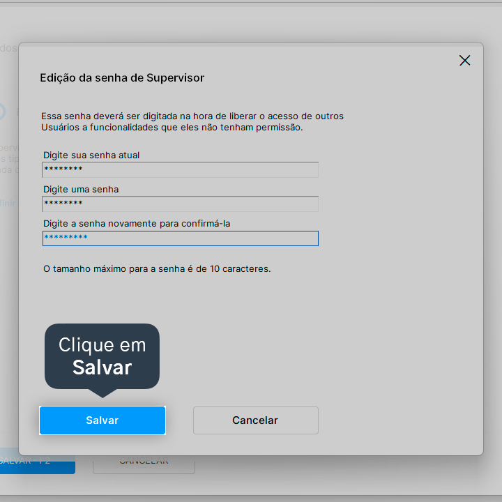 Pronto! A nova senha de supervisor está registrada para o usuário selecionado.