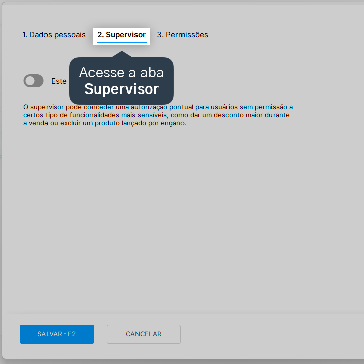 5. Para cadastrar a primeira senha, ative a opção Este usuário é um Supervisor.