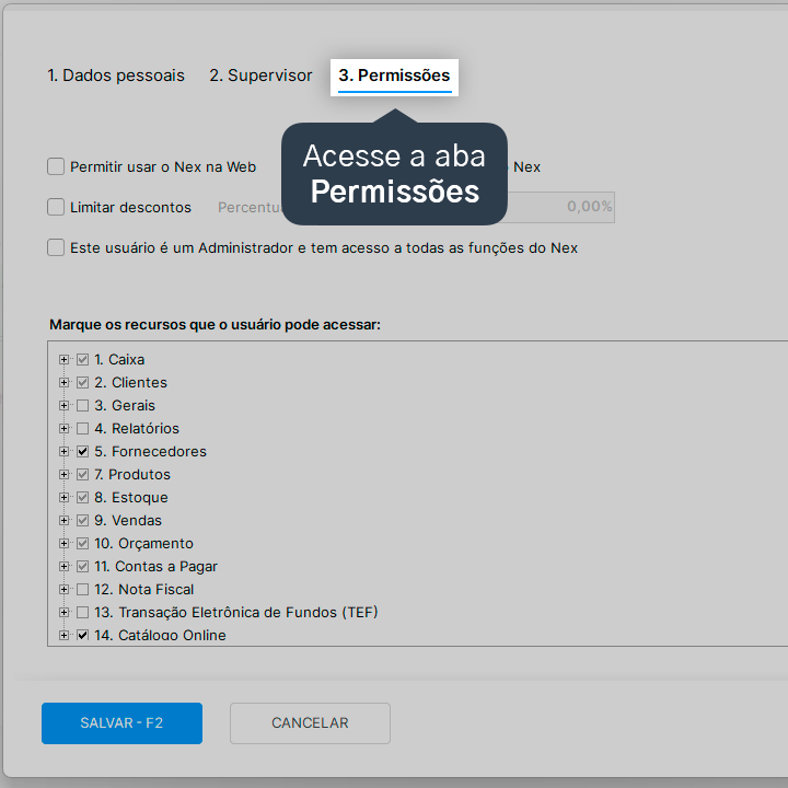 Aprenda a criar uma senha de supervisor para liberar as opções de excluir produtos e de dar descontos na tela de vendas do Nex.