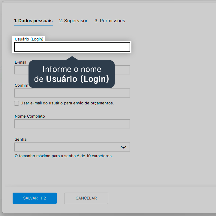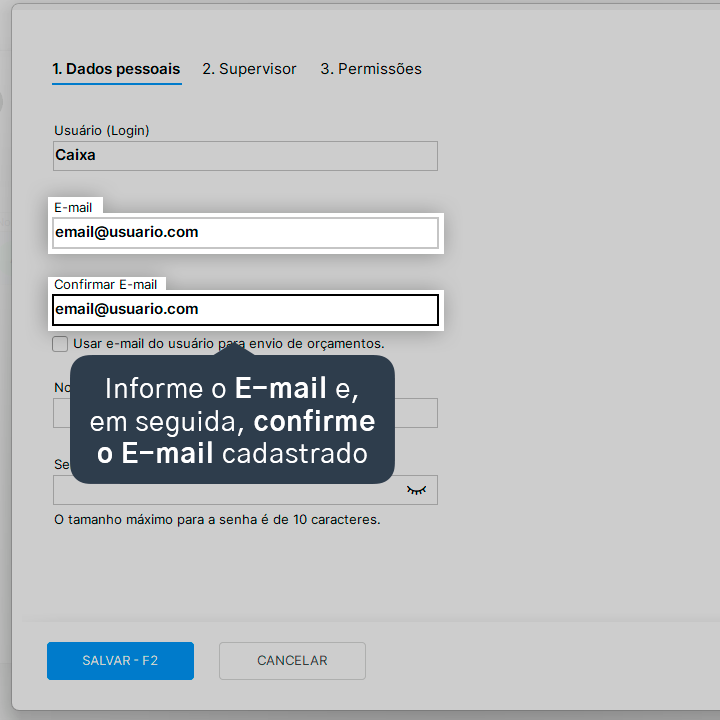 10. Após finalizar o cadastro, clique em Salvar - F2.