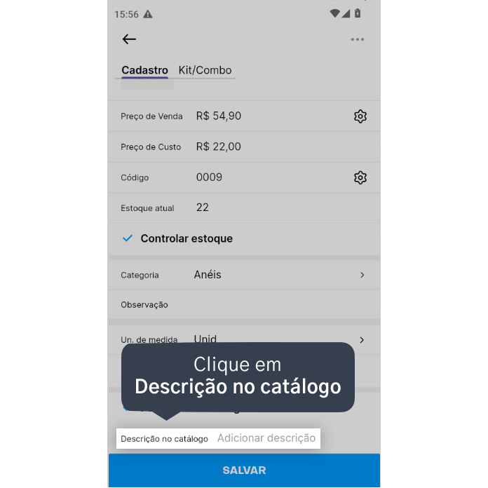 Pronto! A descrição do produto foi adicionada e está disponível no seu Catálogo online.