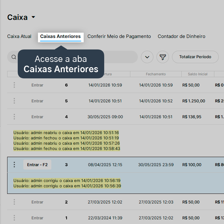 Veja como editar ou cancelar uma transação registrada em um caixa anterior.