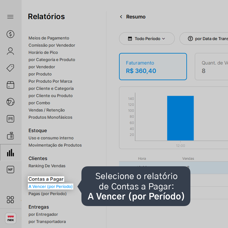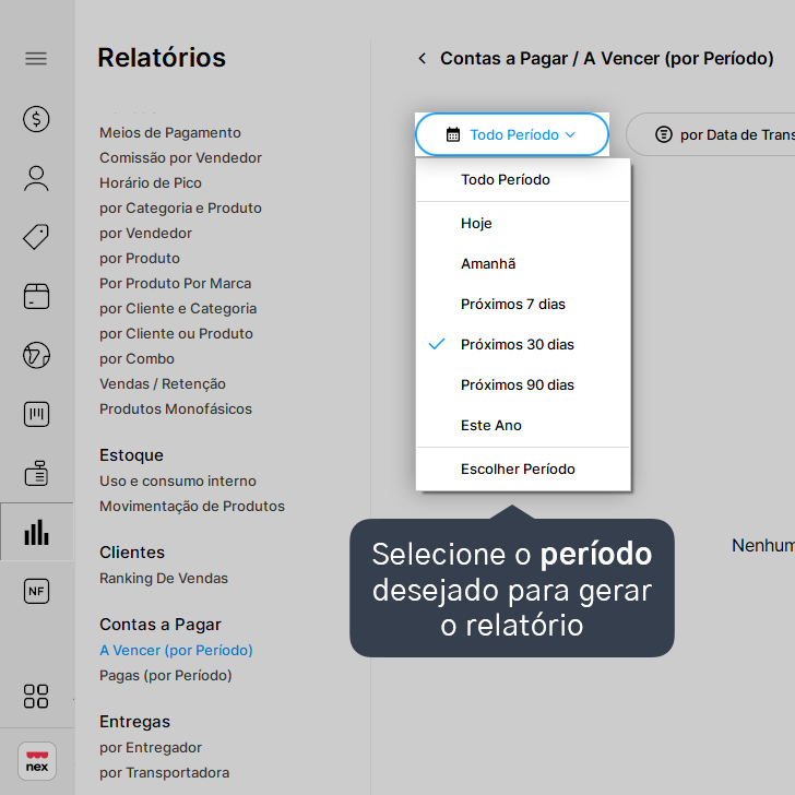 2. Selecione o relatório de Contas a Pagar: A Vencer (por Período).