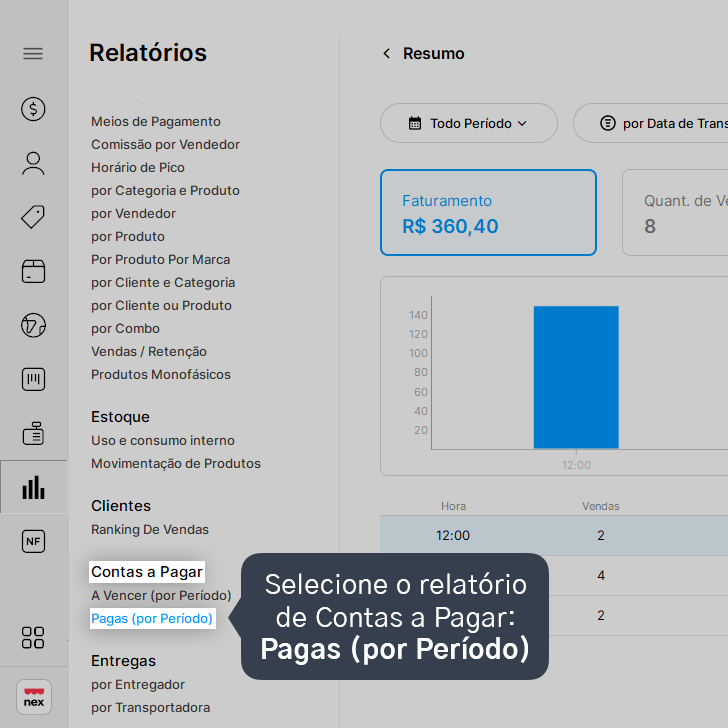 2. Selecione o relatório de Contas a Pagar: Pagas (por Período).