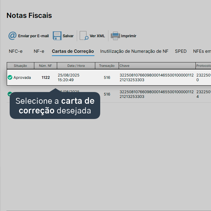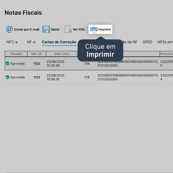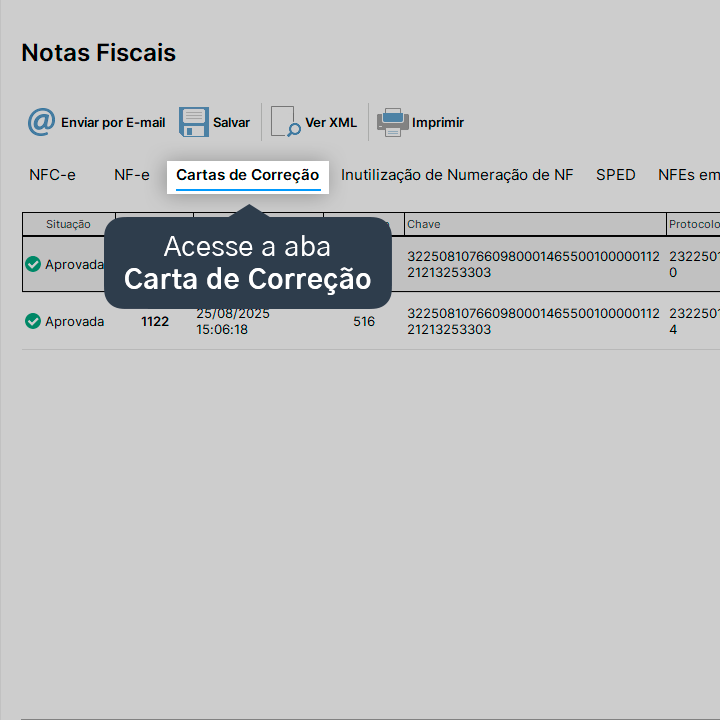 1. Se desejar imprimir, acesse a aba Cartas de Correção.