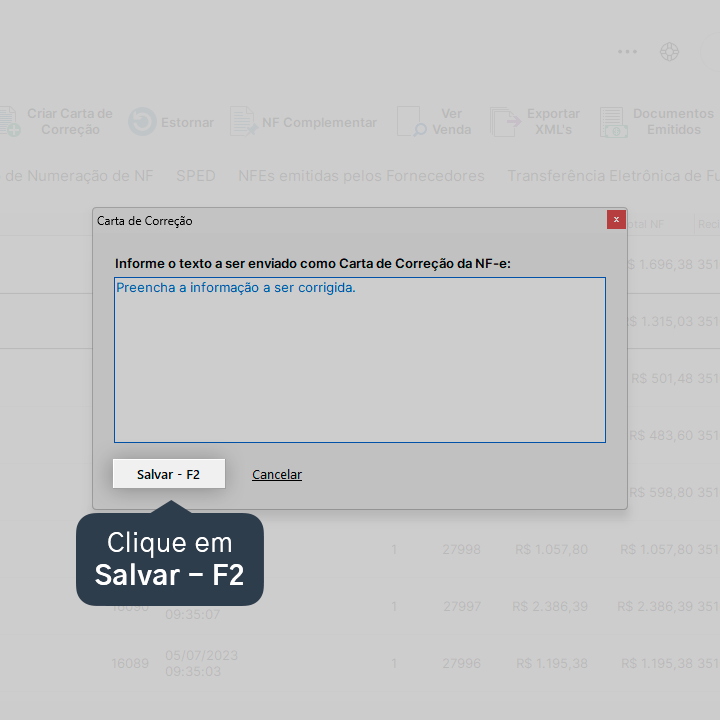Importante: recomenda-se que você verifique com a sua contabilidade se a informação que deseja ajustar pode ser corrigida por uma carta de correção. A Sefaz irá aprovar a carta de correção independentemente de seu conteúdo, o que não significa que a correção será fiscalmente válida.